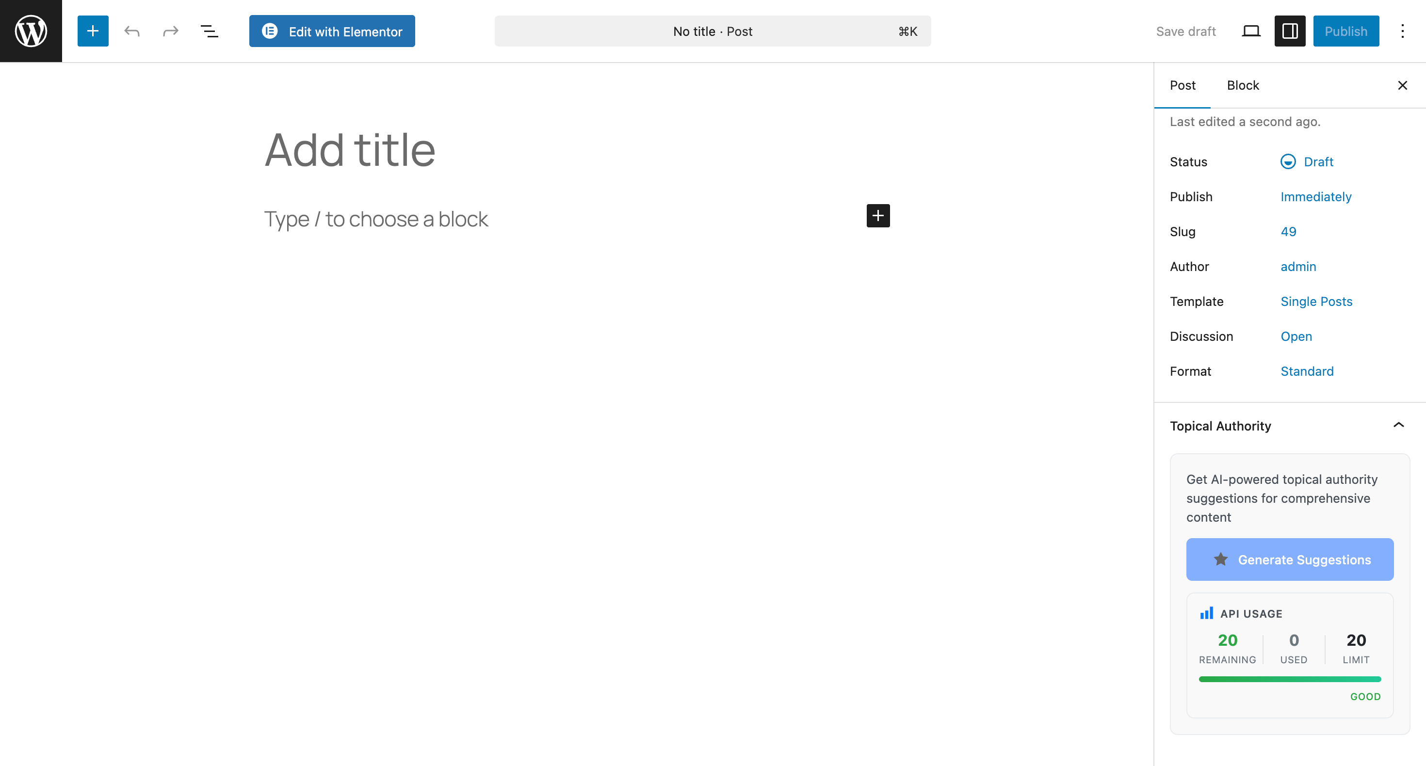Topical Authority panel in Gutenberg editor