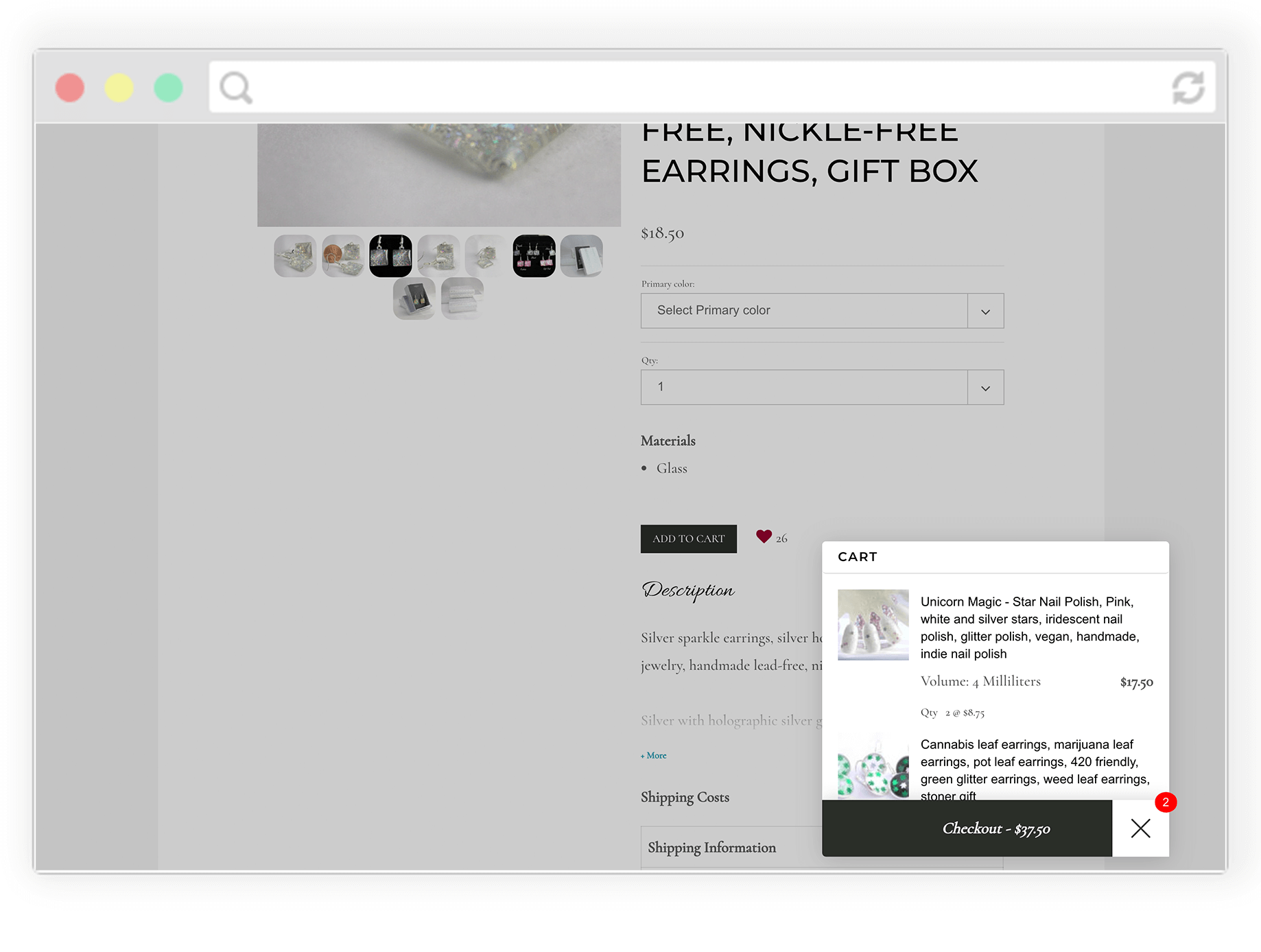 Your visitor has completed their journey on your website and has clicked on the “Checkout” button. They are taken to Etsy to complete their order.