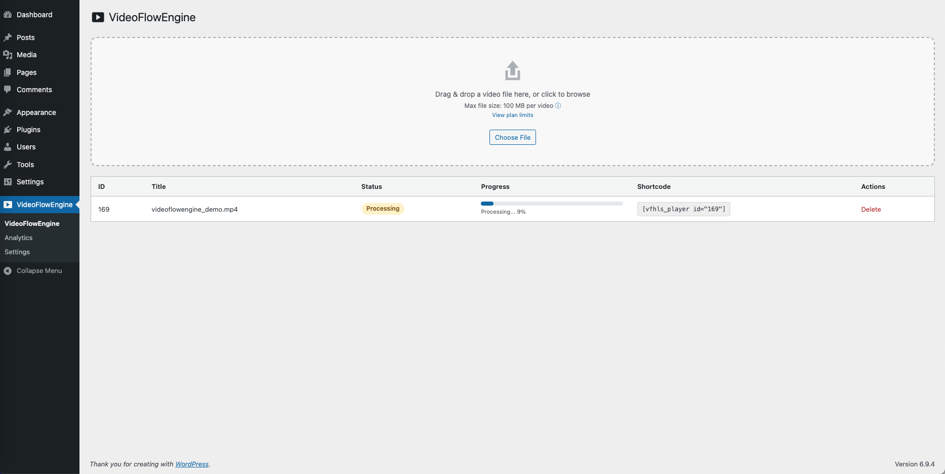 VideoFlowEngine lets you host videos directly inside WordPress with adaptive HLS streaming, global CDN delivery, and built-in analytics.